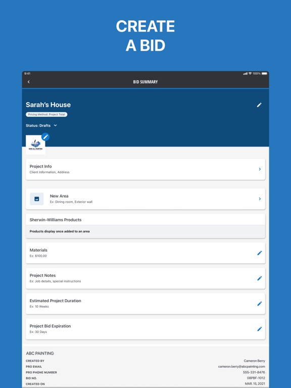 Capture job details and quickly deliver a professional bid to your customers.