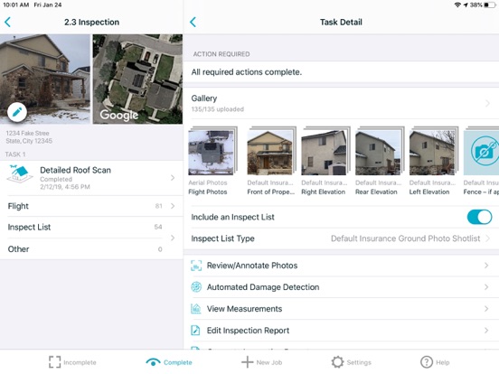 Capture imagery to generate 3D models and get measurements (accurate to the inch, not the foot) of every facet and features of a roof. You’ll be able to see these in the IMGING Web App.