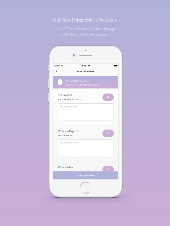 * Readings for Every Phase - The cards help you analyze every stage of your intention and manifestation. Get a reading whenever there's a new phase. Get inspired, get advice on overcoming obstacles, and questions to reflect on past decisions.