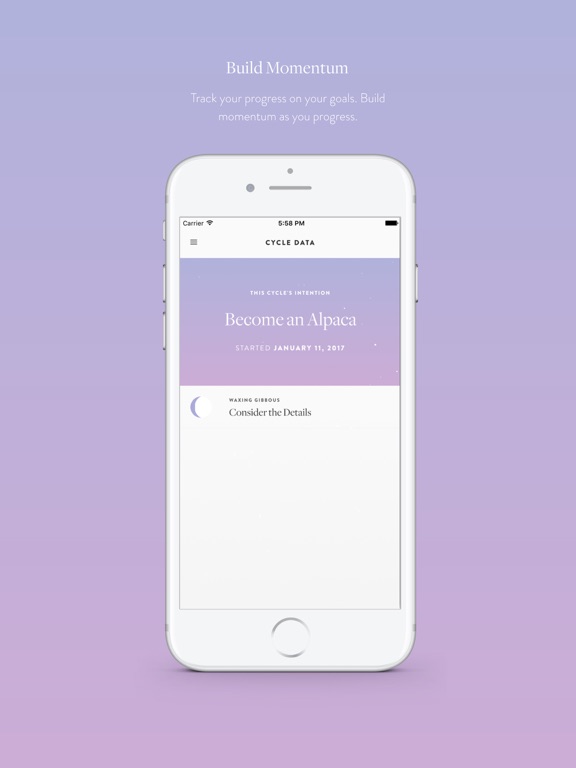 * Set Goals - Sync your intentions with the phases of the moon. Each phase of the moon's cycle represents a stage of manifestation and creation. Carry out tasks according to ancient wisdom, and feel in tune with the universe.