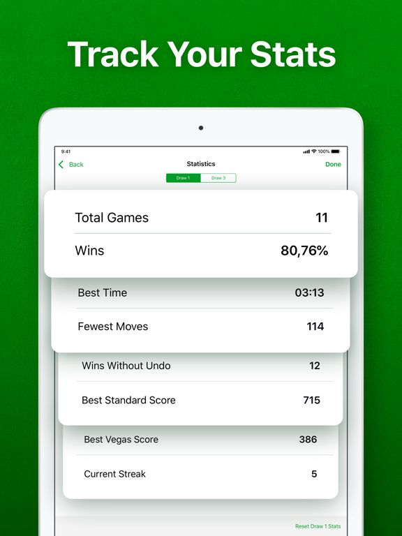 · Play different modes: Standard or Vegas Cumulative, Draw 1 or Draw 3.