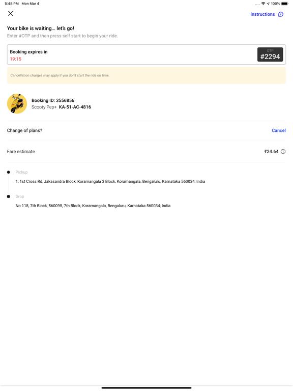 Bounce offers you two plans: Short Rides - point to point city rides & Long Rides - hourly or daily rentals.