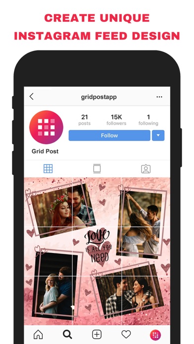 Grid Post app allows you to split(crop) your large rectangular photos into a number of square pics and upload them to Instagram and impress your friends and your profile page visitors!