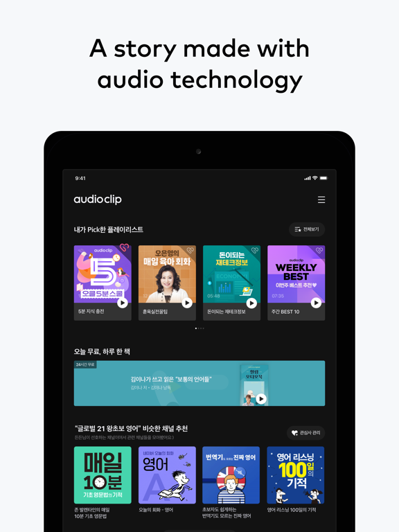 Audio dramas during commute time, knowledge lectures in preparing dinner, and foreign language conversations for 10 minutes on the subway! Meet contents on audio clips that fill your day with pleasure.