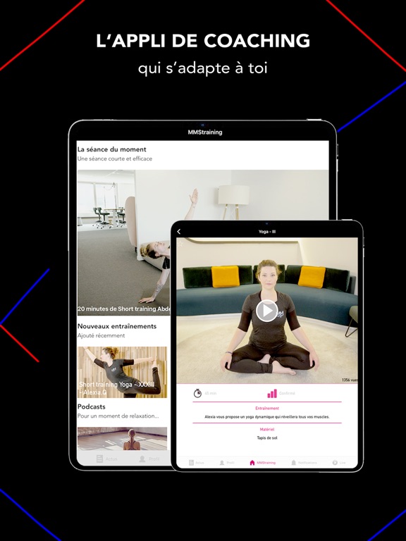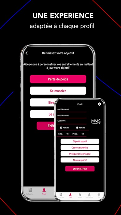 PRÊT POUR UNE NOUVELLE EXPERIENCE SPORTIVE? L'application MMS TRAINING te donnera accès à un programme d'entraînement personnalisé pour t'aider à atteindre tes objectifs (perte de poids, se muscler, se surpasser ou garder la forme). Tu pourras suivre les cours en ligne de tes trainers préférés depuis la maison.