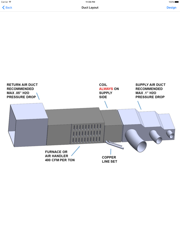 Duct sizing & layout calculator for flex, round metal, rectangular and oval