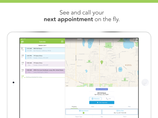 - View their tasks, schedule, appraisal files, and client information for any day.