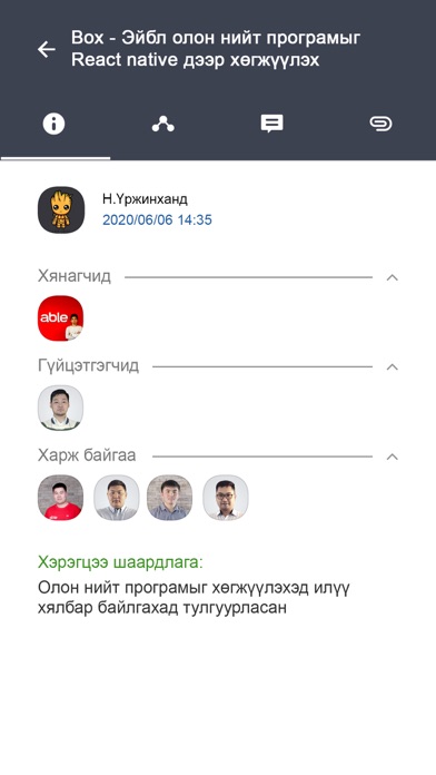 Энэ нь "Able" системийн "Ажил хэрэг" програмын гар утсанд зориулсан хувилбар бөгөөд хэрэв та "Able"-ийн хэрэглэгч бол өөрийн эрхээр нэвтэрч тус аппликэйшнийг хэрэглэх боломжтой. Албаны ажил хэргээ гар утсан дээрээсээ хянаж хаана ч явсан ажлаа төлөвлөн, гүйцэтгэж цаг алдалгүй хөтлөх боломжийг энэхүү "Able Works" аппликэйшн танд олгоно. Үүнээс хойш ажлын болон гэрийн интернэт тасарсан үед утасны "3G"-гээрээ системд холбогдон ажлаа амжуулах боломжтой боллоо.