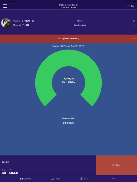 View both Postpaid and Prepaid DESCO Electricity bills through one app and pay your Postpaid due bills and recharge Prepaid account from the application by only a few taps.