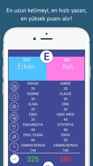Klasik isim-şehir oyunundan farklı olarak burada önemli olan sadece bir kelimeyi bilebilmek değil, aynı zamanda en uzun kelimeyi bilebilmek. Örnek vermek gerekirse, E harfi için, isim kısmına Erkan yazan biri 25 puan alırken, Erdemir yazan biri 35 puan alır. Ayrıca sadece uzun yazmak da değil, 6 farklı kategorideki kelimeleri en hızlı yazan da ekstradan süre bonusu kazanıyor.