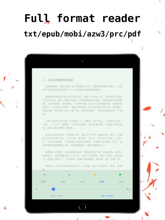* Read eBooks in multiple formats, including: epub, mobi, azw, azw3, txt, md ...