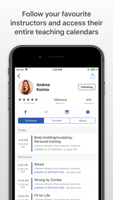 - SEARCH, RATE & FOLLOW your favorite fitness professionals and their complete training calendars