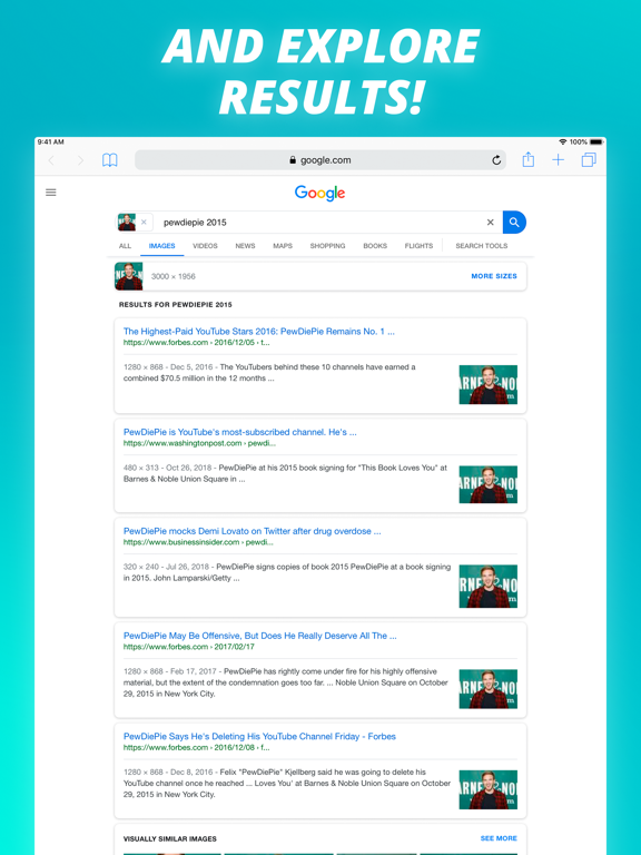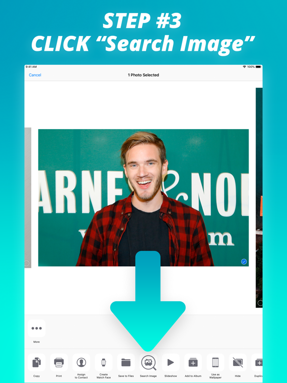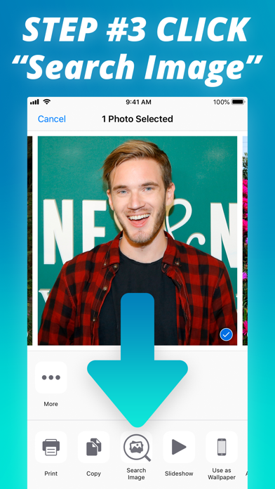 You can use a picture to find related images from the web. The app makes it easy to search by images in Google, Tineye and Yandex from a mobile phone.