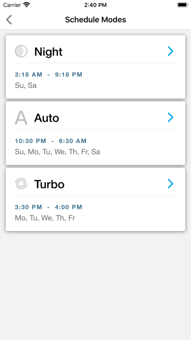 SCHEDULING: Set a schedule of when you want the SKY unit to go into a certain mode.