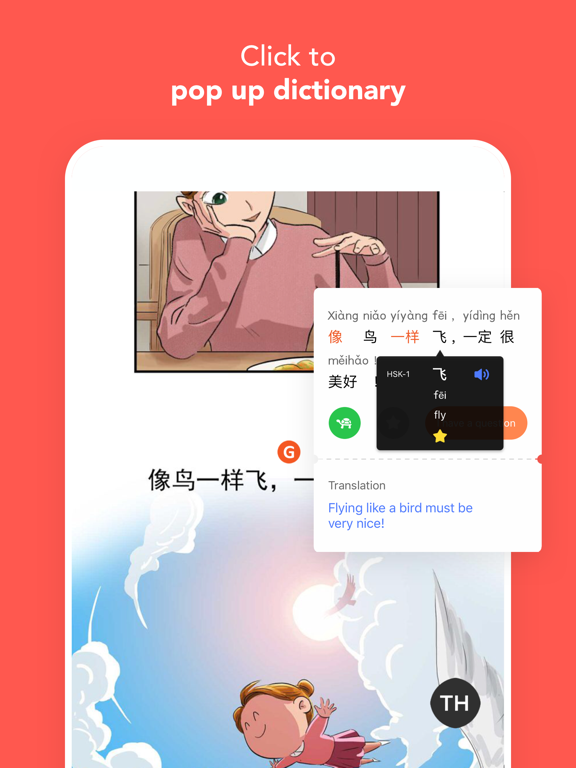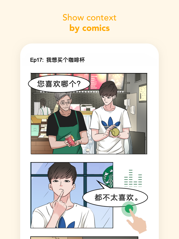 In this App, M Mandarin(漫中文), each Chinese words, phrases and dialogues is clickable in comics.