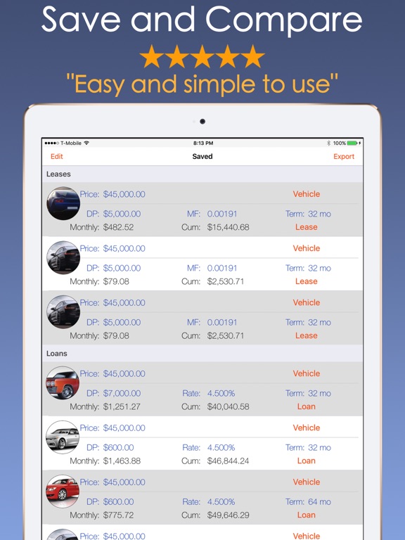 Knowledge is power. The more you educate yourself before sitting down with a car dealer the more money you will keep in your pocket. This app is designed to estimate your monthly payments and total costs of interest when considering an auto lease or an auto loan. Make sure you master auto financing before it masters you!