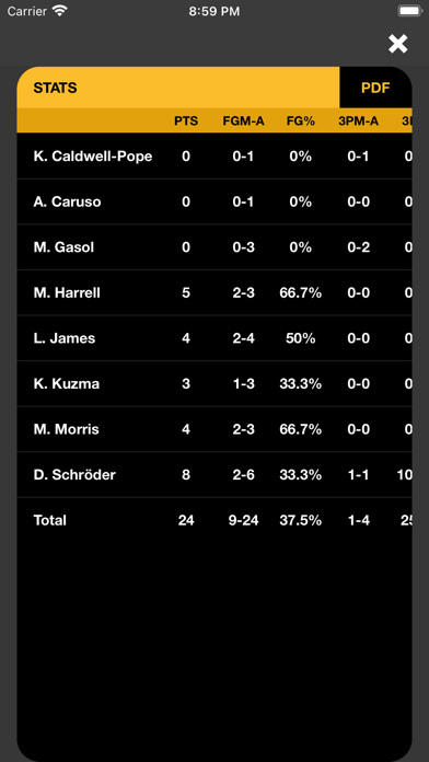 Save your team stats as PDF reports which can be emailed, printed and shared to your team. The play-by-play for each quarter is included in the PDF report.