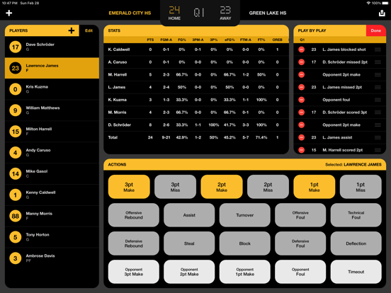 InfiniteHoops Stats is the easiest to use basketball scoring and statistics tracking app. Large buttons allow for quick entry while following fast paced player action. Track player events with the touch of a button.