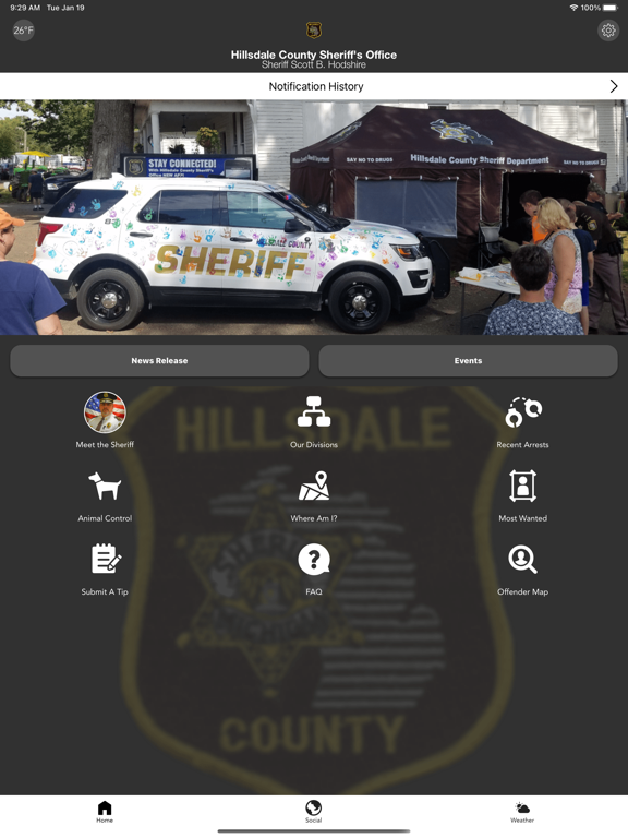 The Hillsdale County Sheriff's Office mobile app is an interactive application developed to help improve communication with Hillsdale County residents and within our communities. The Sheriff App allows residents to connect with the Sheriff's Office by submitting tips, and other useful interactive features, as well as providing the community with the latest public safety news and information. The app is another public outreach effort developed by the Sheriff's Office to improve communication with our residents and visitors. The Hillsdale County Sheriff's Office is the largest law enforcement agency within Hillsdale County. This app is not intended to be used to report emergency situations. Please call 911 in an emergency.