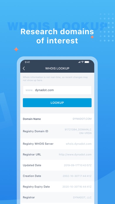 Access the Whois database at anytime! If you are researching your next domain purchase, looking for a domain owner’s contact information or checking the expiration on a domain, the Dynadot app is the perfect tool to assist you.