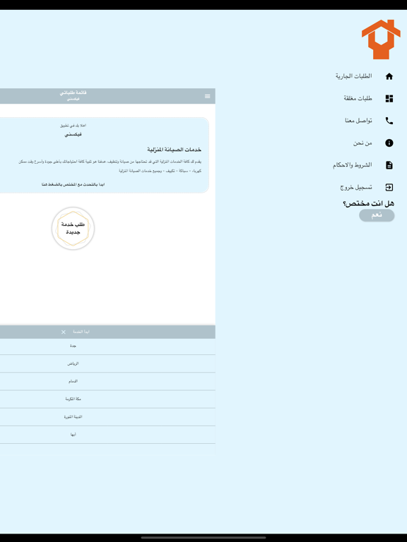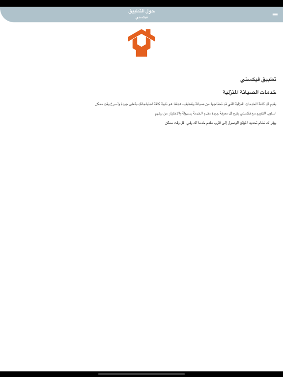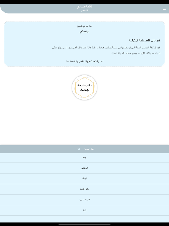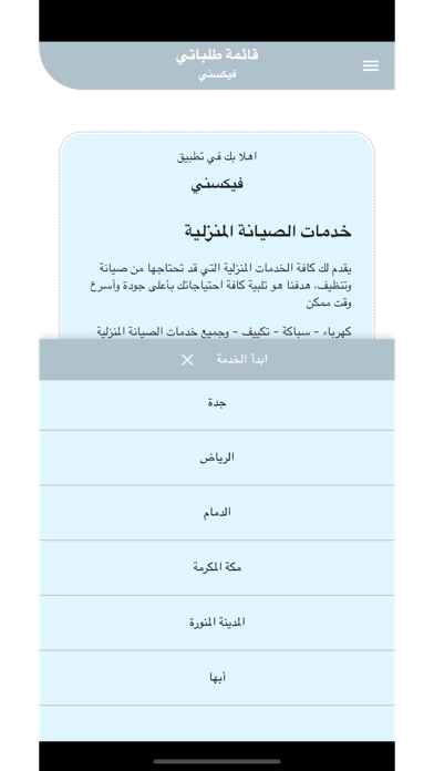 خدمات تطبيق فيكسني: فيكسني, صيانة منزلية, خدمات منزلية, خدمات شخصية, كهرباء, سباكة, تكييف , تبريد, مكيفات ,تنظيف ,رش مبيدات,نجار ,دش ,جوال,مكياج,أخصائي شعر ,تجميل ,مونيكير ,بوديكير,مساج ,حاضنة أطفال,منسق حفلات,مصور حفلات,حلاق ,طباخ,بلاّط,ديكورات,كهربائي سيارة,ميكانيكي السيارة,تغليف ونقل,سطحة سيارة,حفظ النعمة,توصيل غاز,دهان,البيت الذكي,أجهزة الكترونية,كاميرات مراقبة,طبيب ,توصيل أدوية,ممرضة,علاج طبيعي وغيرها.