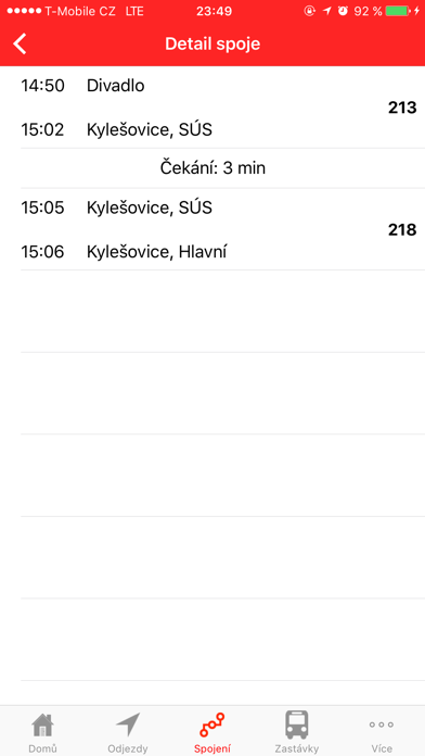 - zobrazení detailu spoje ve vyhledaném spojení