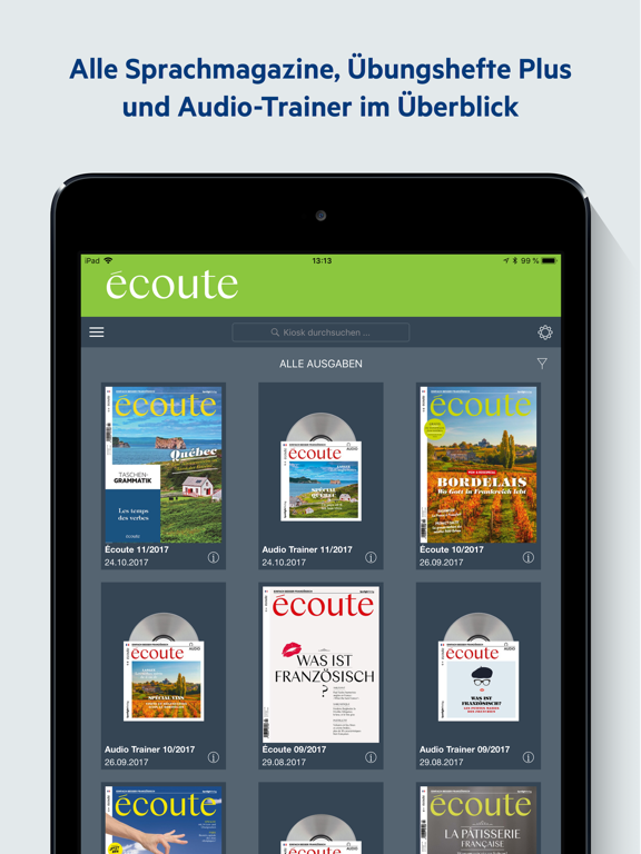 • Sie haben bereits ein digitales Écoute-Abonnement über den Spotlight Verlag? Die Nutzung der App ist für Sie inklusive: Laden Sie einfach die App herunter, und loggen Sie sich mit Ihren bestehenden Zugangsdaten ein.