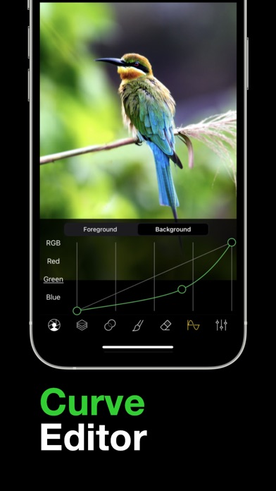 - Adjust brightness, contrast, saturation, highlights, shadows, temperature and tint of the background and foreground separately.