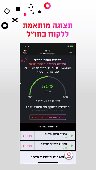 אפליקצית my HOT mobile מאפשרת לך לקבל מידע אישי 24/7 ולבצע מגוון פעולות בשירות עצמי