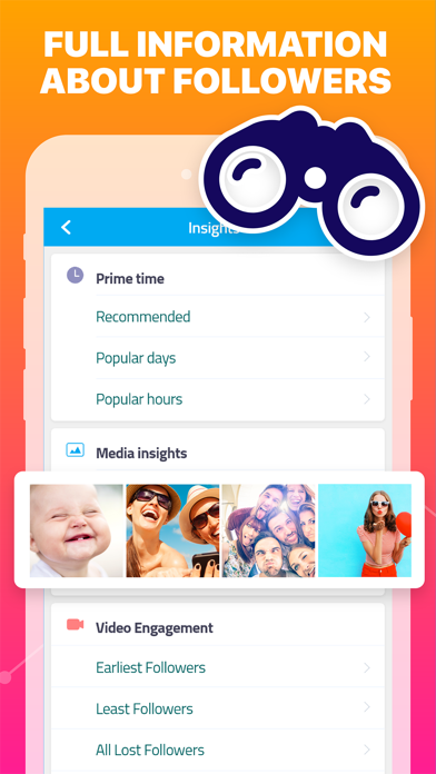 Checkup who unfollowed you or deleted like or comment. Find out your best followers and not following back users. Over 20 Insights for Profile analysis and Behavioral Statistics.