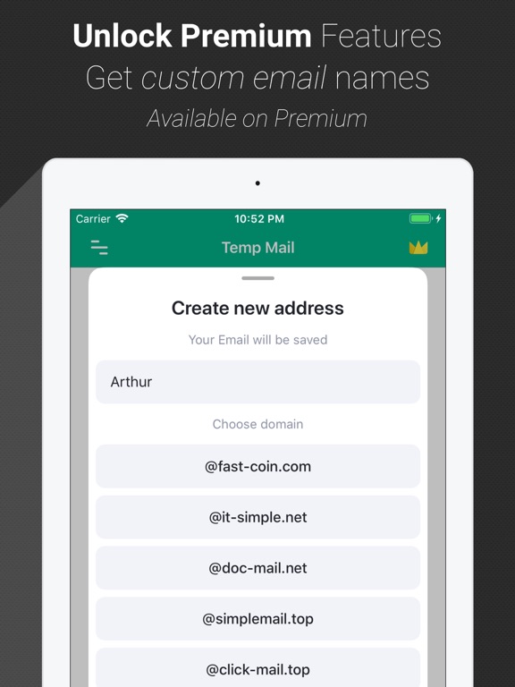 If you choose to purchase Temp-Mail Premium, payment will be charged to your iTunes account, and your account will be charged for renewal within 24-hours prior to the end of the current period. Auto-renewal may be turned off at any time by going to your settings in the iTunes Store after purchase. Premium subscription prices can depend on user country, you can see exact terms and prices clearly on purchase screen. Any unused portion of a free trial period will be forfeited when you purchase a subscription.