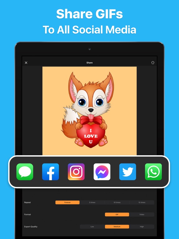 ■ Share GIF to Instagram, Facebook, Twitter, Messenger & More.