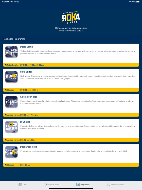 Vida en Dios sentido de responsabilidad amor propio y por el prójimo proclamar la verdad ¿Para quiénes? Roka Stereo esta dirigida para hombres y mujeres que tengan necesidad de Dios y que tengan un corazón dispuesto para oír el mensaje diario que Dios tiene para ellos.
