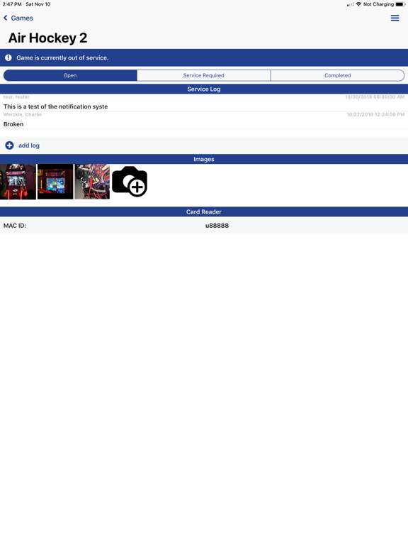 The InterCard iService app assists technicians in maintaining their games by providing easy access to service logs and the ability to take games in and out of service.
