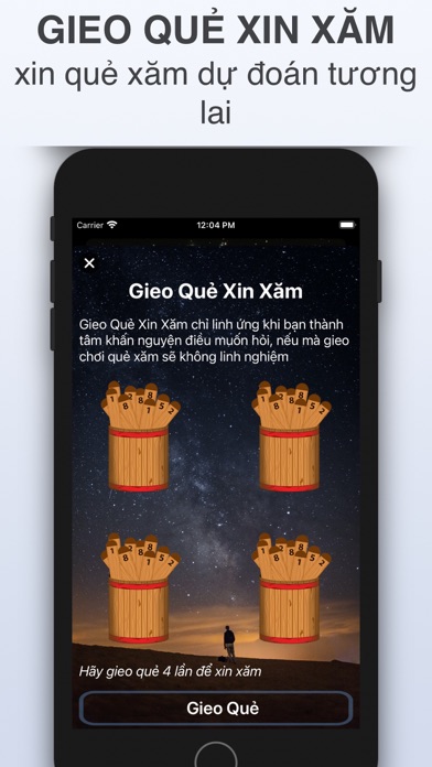 • Gieo quẻ xin xăm: Giúp bạn xin những quẻ xăm để trả lời những khúc mắc, câu hỏi trong lòng, từ đó giúp bạn dự đoán tương lai, tìm ra những hướng đi đúng đắn