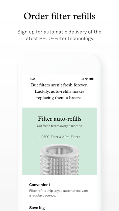 Molekule air purifiers use PECO-Filters to trap large particles and destroy pollutants. The app lets you track your filter’s status, so you know when to replace them.