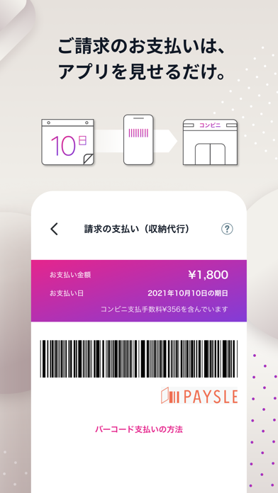 • お支払いはまとめて翌月でOK。コンビニでアプリを見せるだけ。