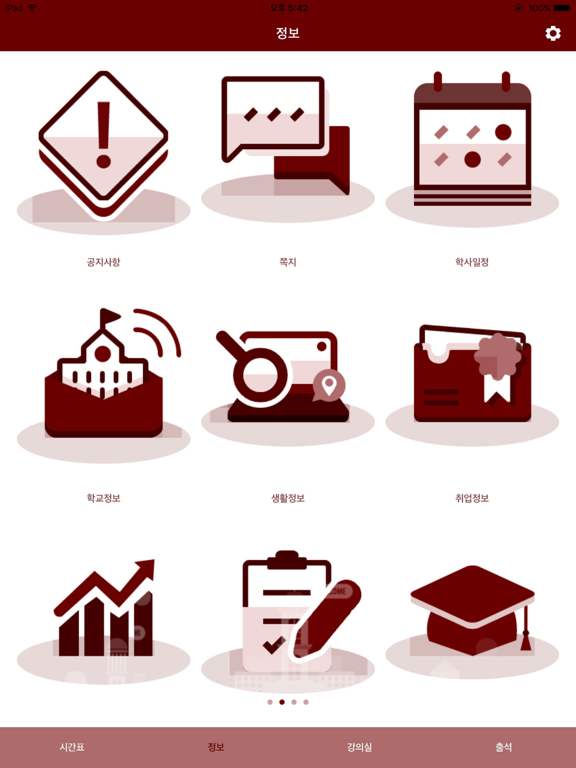 2. 정보 - 공지사항, 쪽지, 학사일정, 학교정보, 생활정보, 취업정보, 성적정보, 강의평가, 졸업관리 등의 다양한 기능을 지원합니다.