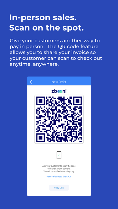 • Send mobile invoices with payment links - for a secure checkout on WhatsApp, Instagram, and other social channels, or share them in person with QR Code feature.
