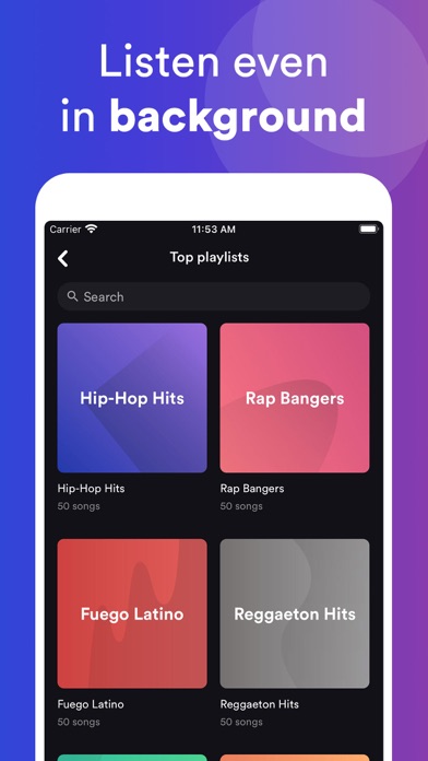 Music player & Playlist maker with tons of different genres, moods, and other trending song categories to play: Pop, Rock, Rap, RnB, Latin, Dubstep, Drum, Electronic, etc.