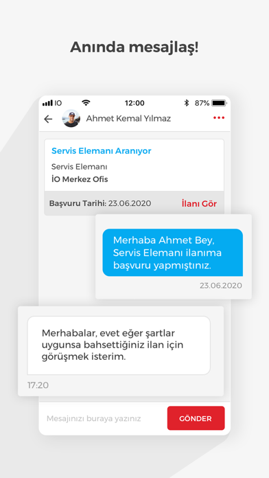 Anlık mesajlaşma özelliğini kullanarak uygun adayla uzaktan iletişime geçebilirsin.