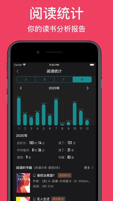 详细记录自己阅读状况,阅读时间、阅读类型、阅读天数、阅读进度、阅读偏好,轻松回溯自己过往的阅读状况;