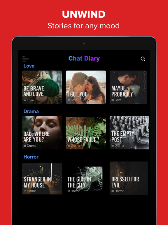 Every chat story is told as a bite-sized text message conversation, as if you were reading someone else's chat history.