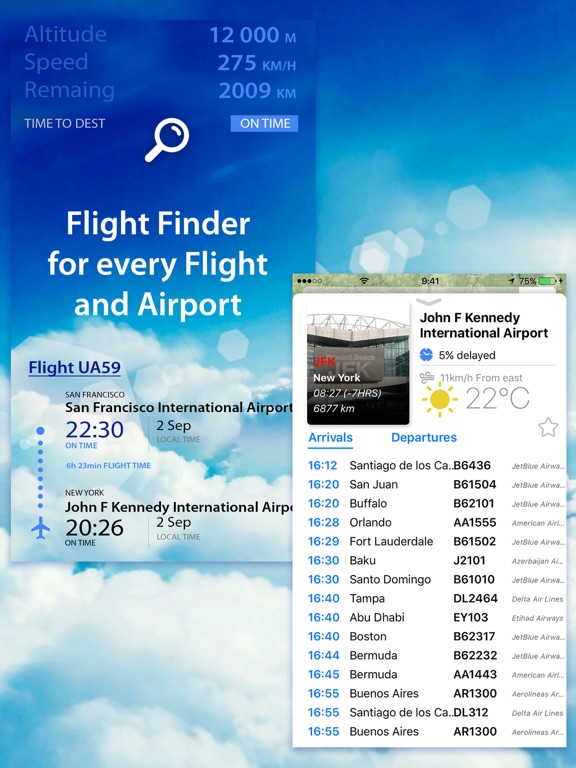 •Search for individual flights using flight number, airport, or airline