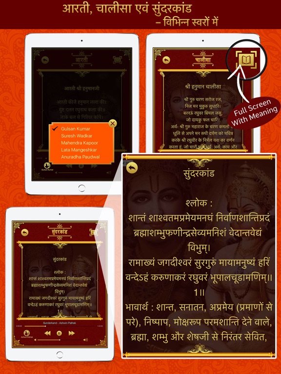 Enjoy the devotional hymns of Hanuman Chalisa on your iPhone and worship Lord Hanuman to fulfil your life.
