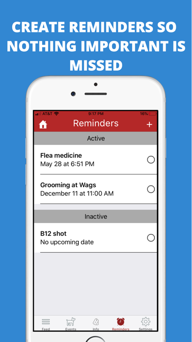 5. Create reminders and alerts so you never forget to take care of your pet.