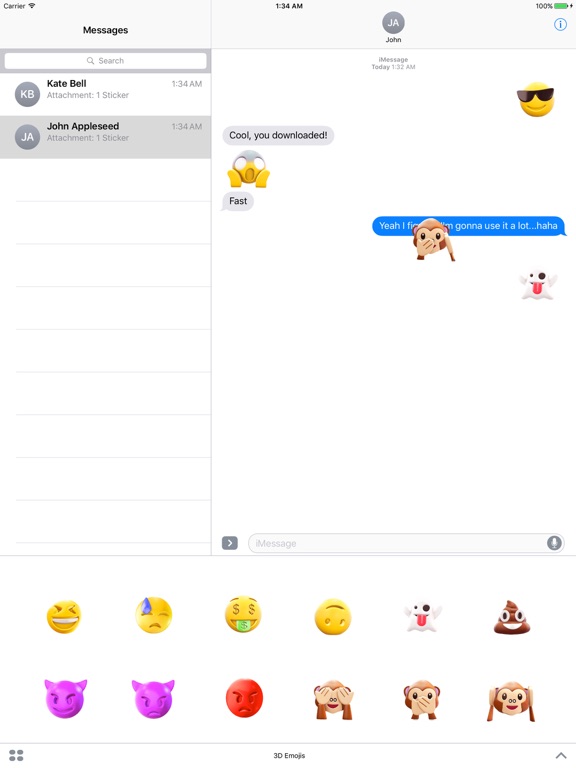 Step 3: Tap the 3D Emojis icon, then start sending stickers to your friends!