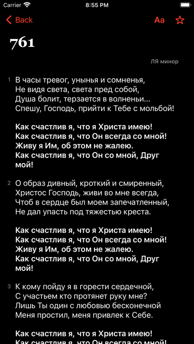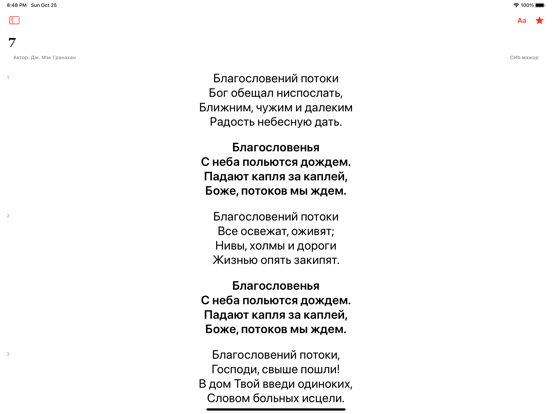 Создайте список любимых псалмов. Если отметить песню звездочкой, она добавится в коллекцию избранных. Активируйте фильтр избранных на странице содержания, чтобы показать только отмеченные гимны.