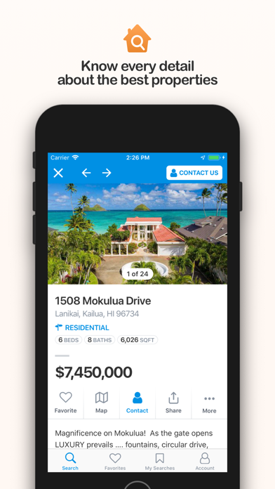 • Property Sharing: Share your favorite properties with your friends and family via email or by posting to your social media accounts.