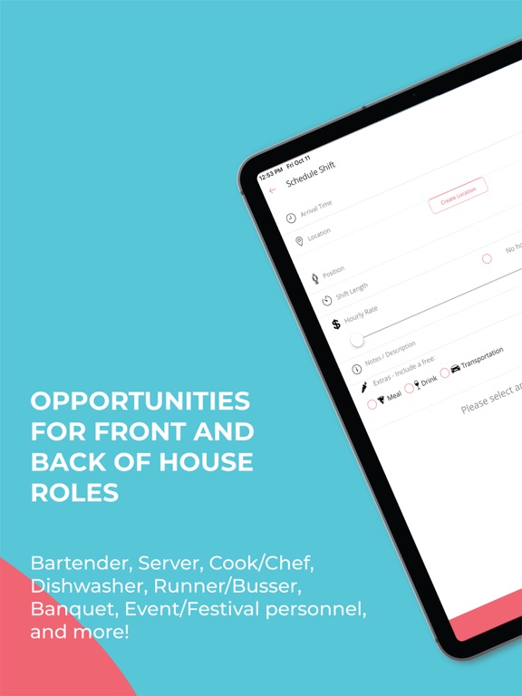 Great Opportunities— Claim open shifts based on your industry experience, performance rating and current location. Opportunities available for all front and back of house positions: bartending, serving, cooking, dish-washing, bussing, hosting, door/security, catering, festivals & events, brand promotion, as well as opportunities in food manufacturing, packaging, sanitation, support roles, and more!